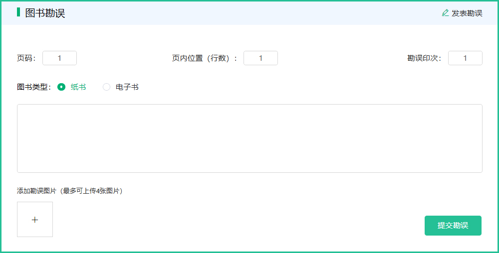 当您发现错误时,请登录异步社区(https://www.epubit.com),按书名搜索,进入本书页面,单击“发表勘误”按钮,输入您发现的错误信息,然后单击“提交勘误”按钮即可(见下图)。本书的作者和编辑会对您提交的错误信息进行审核,确认并接受后,您将获赠异步社区的100积分。积分可用于在异步社区兑换优惠券、样书或奖品。