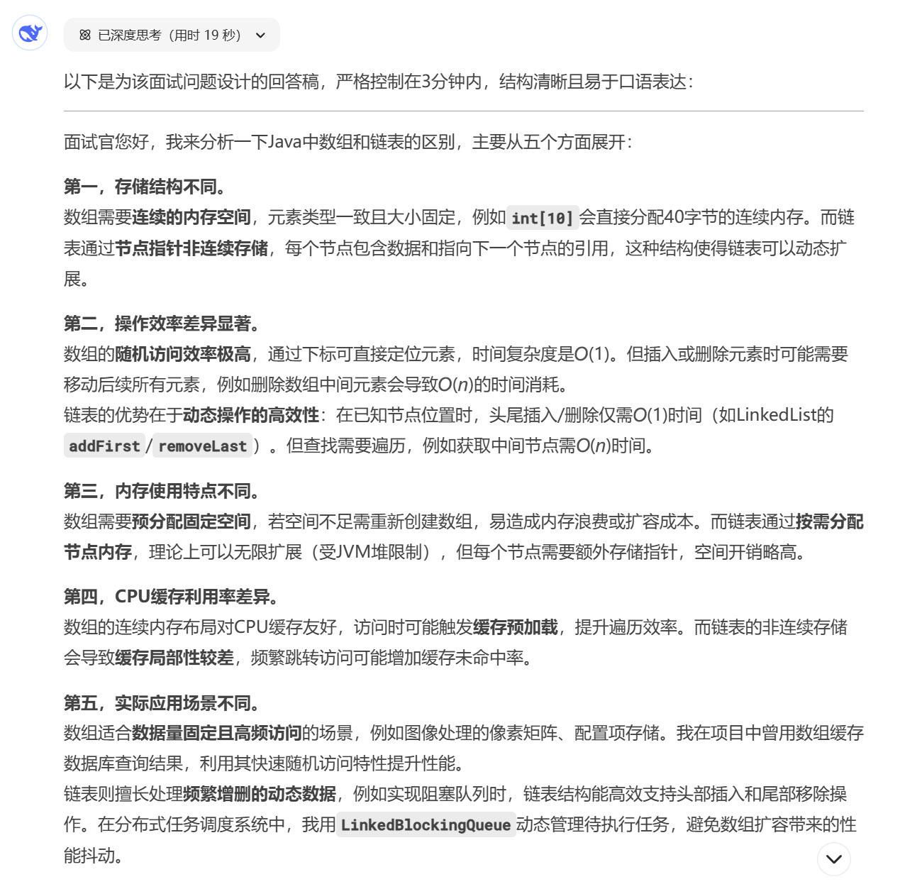 ##面试官提出问题【请分析Java中的数组和链表的区别(面试问题)】。