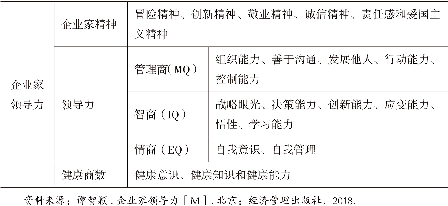 许多文献资料关注领导力对于组织绩效的重要影响。高效领导力被视为组织成功的关键,而高效领导力取决于领导者的能力。如果人们只有好的管理能力而缺乏领导技能,就只能取得一般的成功,只有具备突出的管理能力和领导技能的人才能取得长远和卓越的成功。企业家不仅在创业时期决定企业的生死存亡,在发展时期依然是企业成功的一个决定因素,企业家的行为结果也是其自身综合素质的体现。这种综合素质不仅包括实现企业目标的独特能力,还包括企业家特有的精神特征。换而言之,这种综合素质就是企业家在精神和能力两个方面的综合体现。在针对企业家群体与领导力方面的研究过程中,理论与实践结合的必要性促使人们对理论的研究也与时俱进。