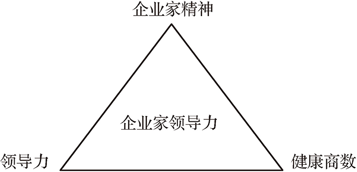 根据企业家领导力三角模型的企业家精神(Entrepreneurship)、领导力(Leadership)和健康商数(Health Quotient)三个构成因素,我们分别对各个因素的内涵和它们之间的关系进行阐释。企业家领导力三角模型的企业家精神因素是指主导企业家整体素质的行为导向因素,是企业家从事商业活动的行为指引,包括冒险精神、创新精神、敬业精神、诚信精神、责任感和爱国主义精神。领导力因素是指企业家经营管理企业需要的基本的能力素质,包括管理商(MQ)方面的组织能力、善于沟通、发展他人、行动能力、控制能力,智商(IQ)方面的战略眼光、决策能力、创新能力、应变能力、悟性、学习能力,情商(EQ)方面的自我意识和自我管理。健康商数是指企业家对自身的身心健康状况进行有效管理的能力,包括健康意识、健康知识和健康能力。