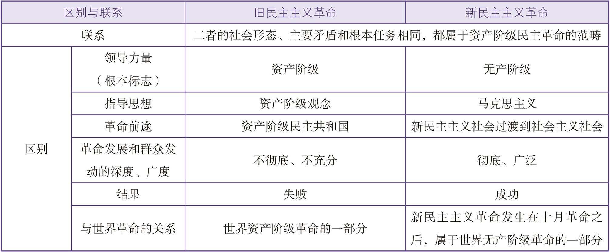 旧民主主义革命(1840—1919年)与新民主主义革命(1919—1949年)之间的关系如下表所示: