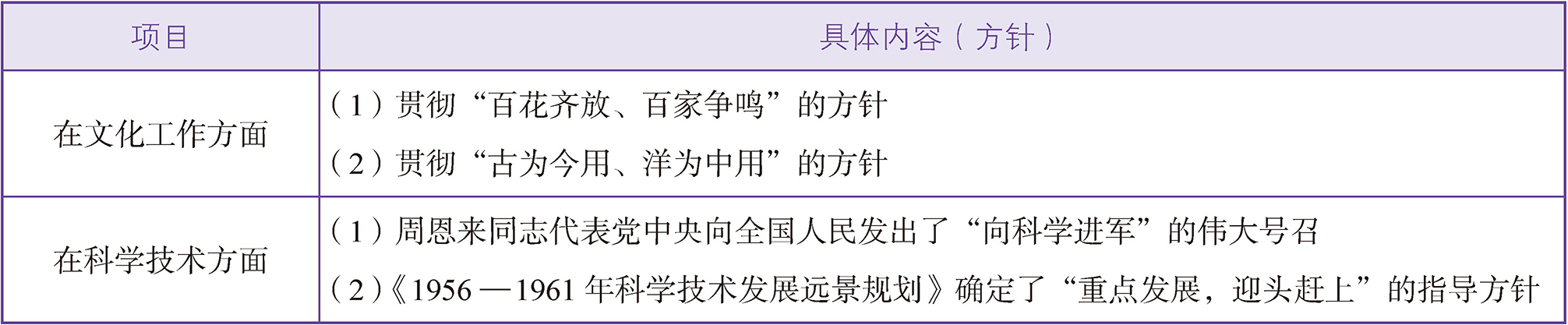 社会主义文化建设中的文化和科技工作方针如下表所示: