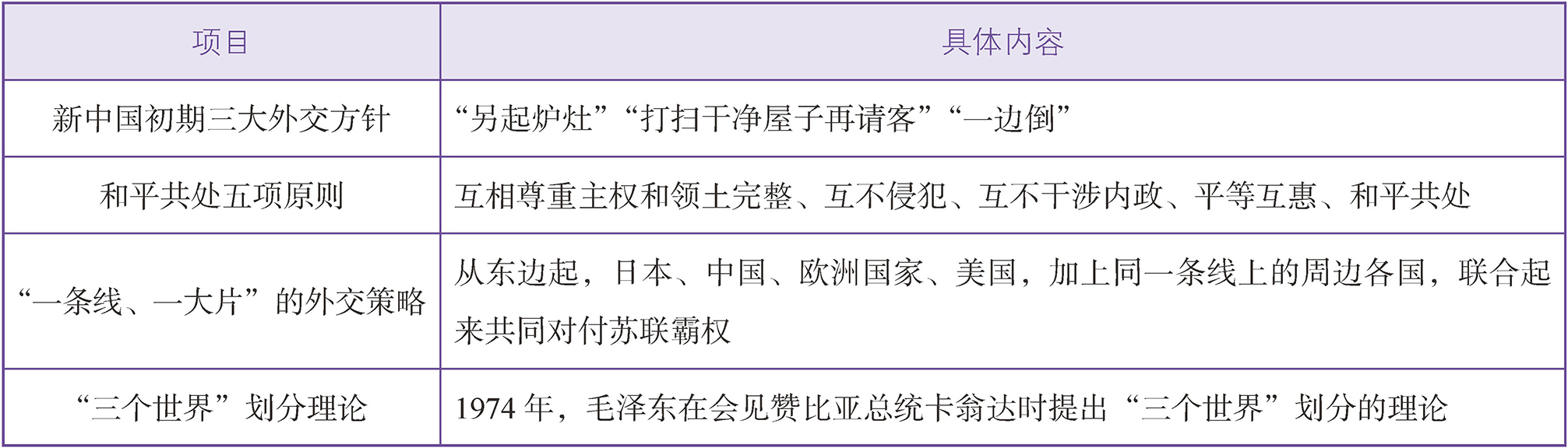 社会主义外交建设的具体内容如下表所示: