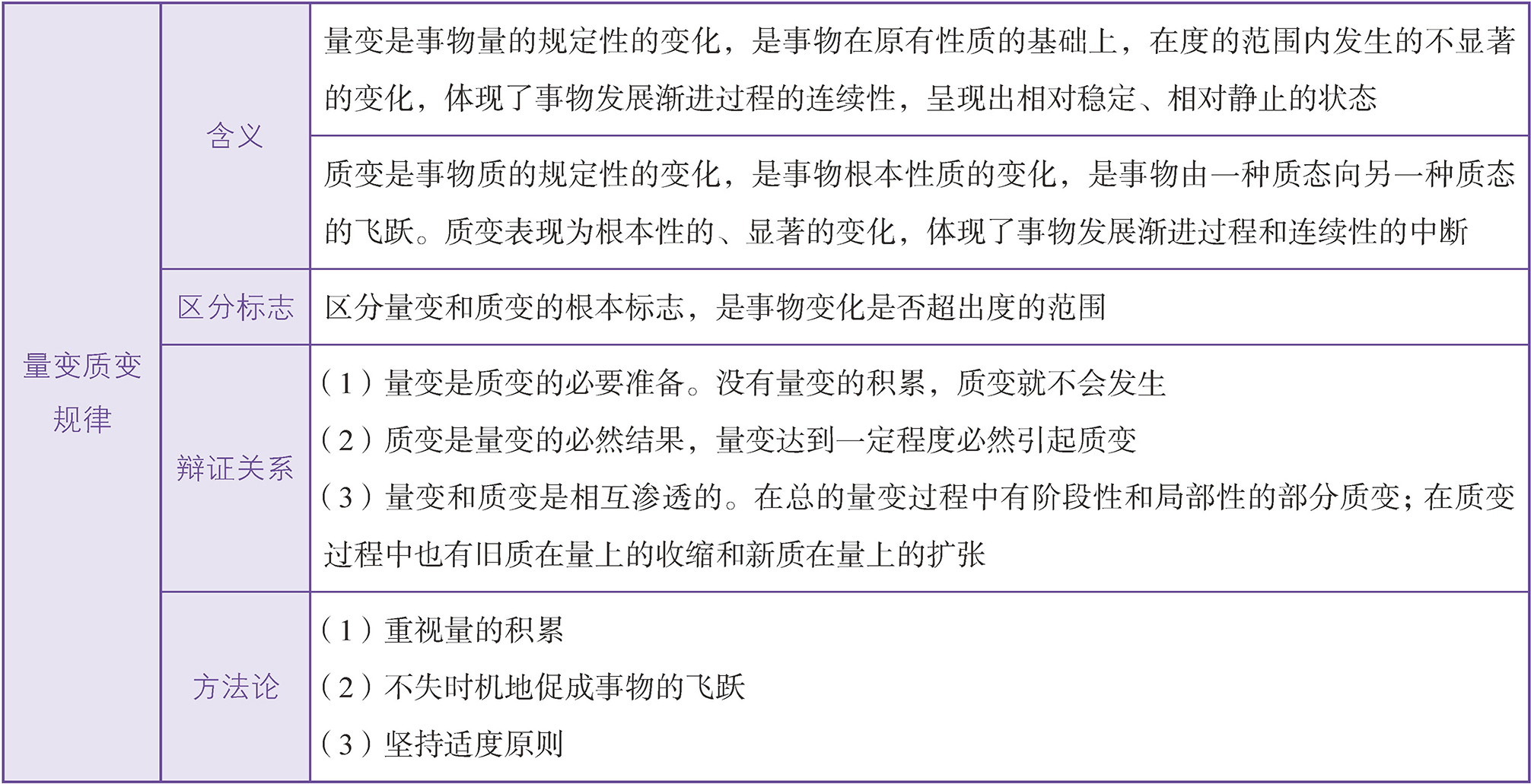 量变质变规律体现了事物发展的渐进性和飞跃性的统一(见下表)。