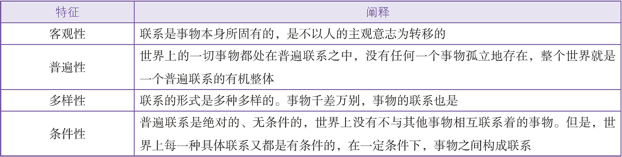 对联系特征的阐释如下表所示: