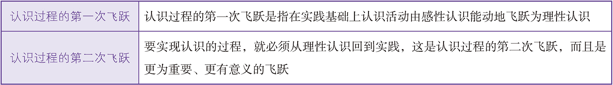 认识过程有两次飞跃,具体内容如下表所示: