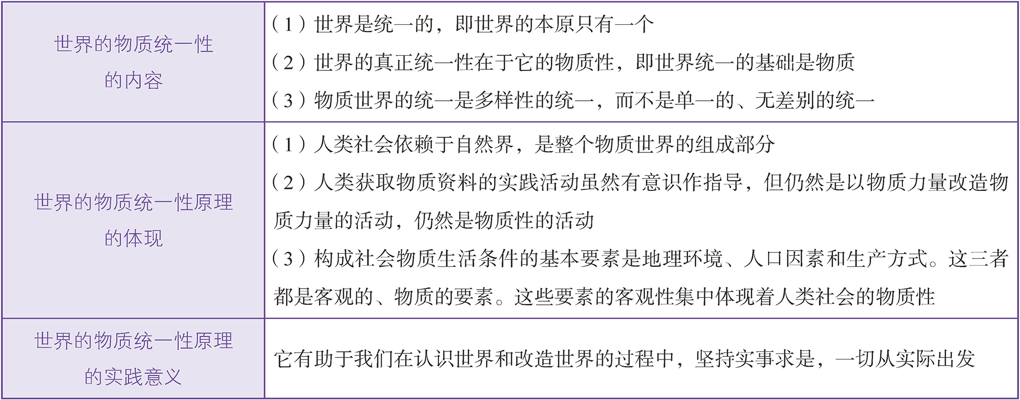世界的物质统一性的内容,以及世界的物质统一性原理的体现和实践意义如下表所示: