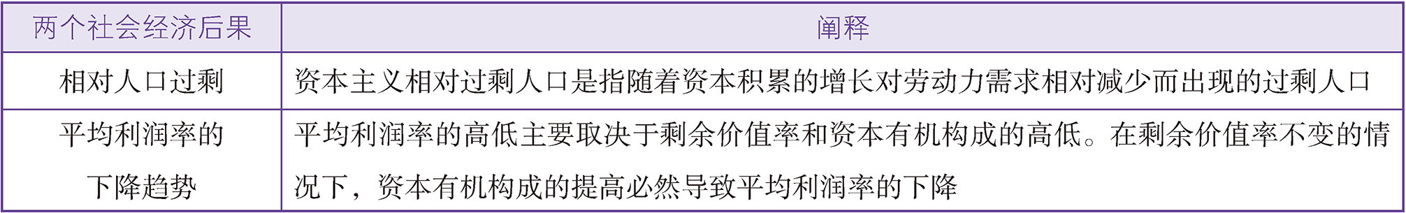 伴随着资本有机构成的不断提高,资本积累导致了以下两个重要的社会经济后果,具体内容如下表所示:
