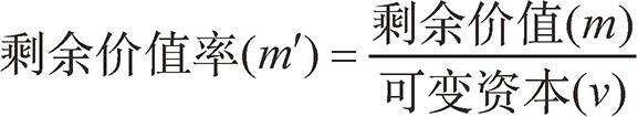 剩余价值率( m’ )衡量的是资本家对工人的剥削程度,用剩余价值( m )和可变资本( v )相比即可得到剩余价值率。