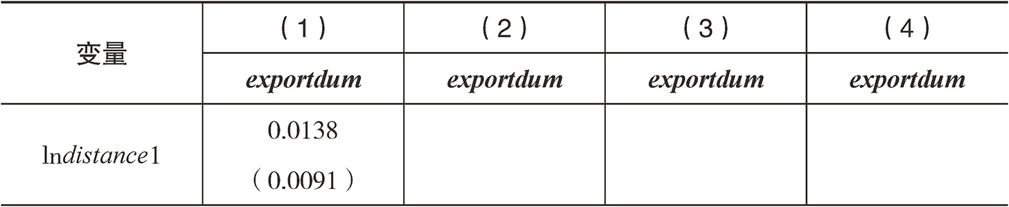 表3-9 银企距离影响企业出口的稳健性检验结果