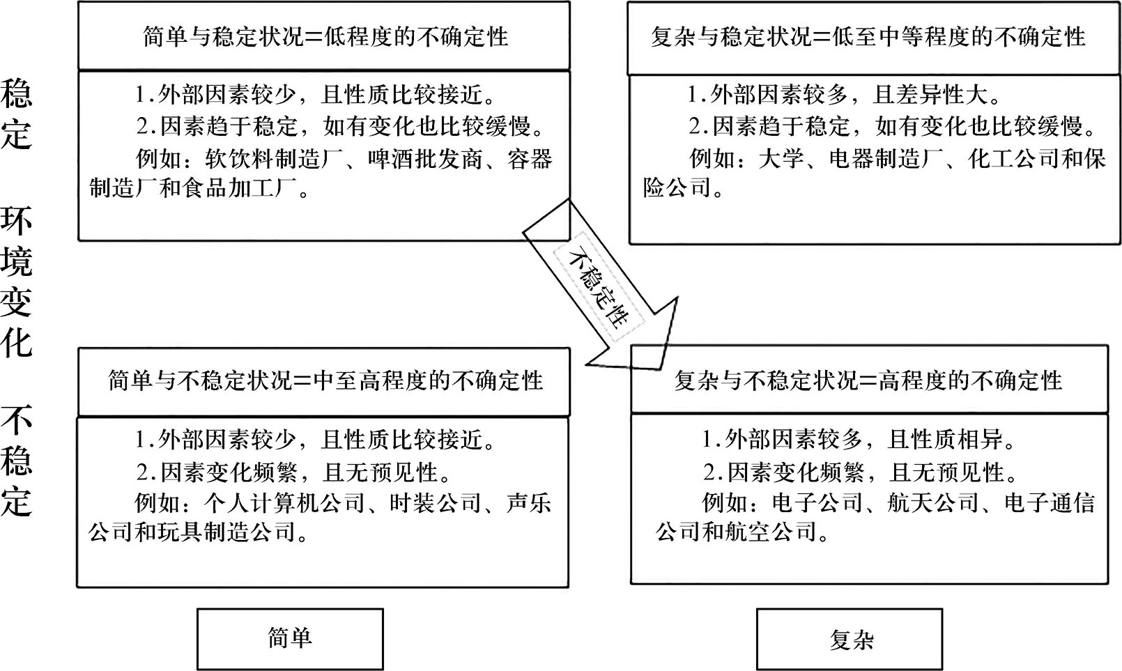 一般而言,从两个维度来衡量企业所面临环境的不确定性:一是企业所面临环境的复杂性,二是企业所面临环境的动态性。
