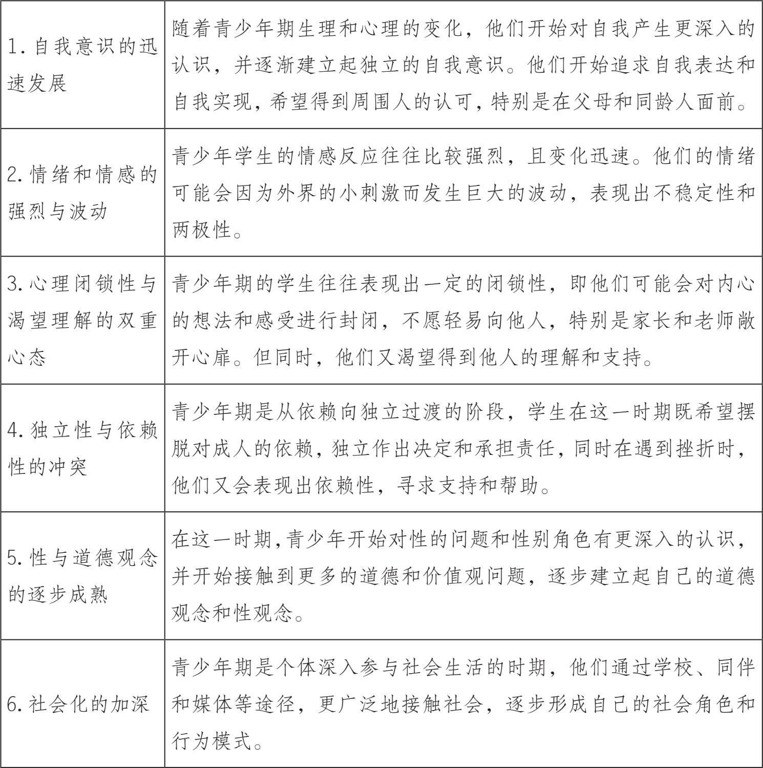 青少年时期是个体心理发展的重要阶段,此阶段的孩子们正值青春期,身体和心理都在发生巨大的变化。青少年学生心理发展具有以下特点: CPwD8lYrR/bhAZ6lpp+Wcex6pRLiDG1zW1C/XOCBIBA0OgRU+9toBdw5Hmlt3JYt