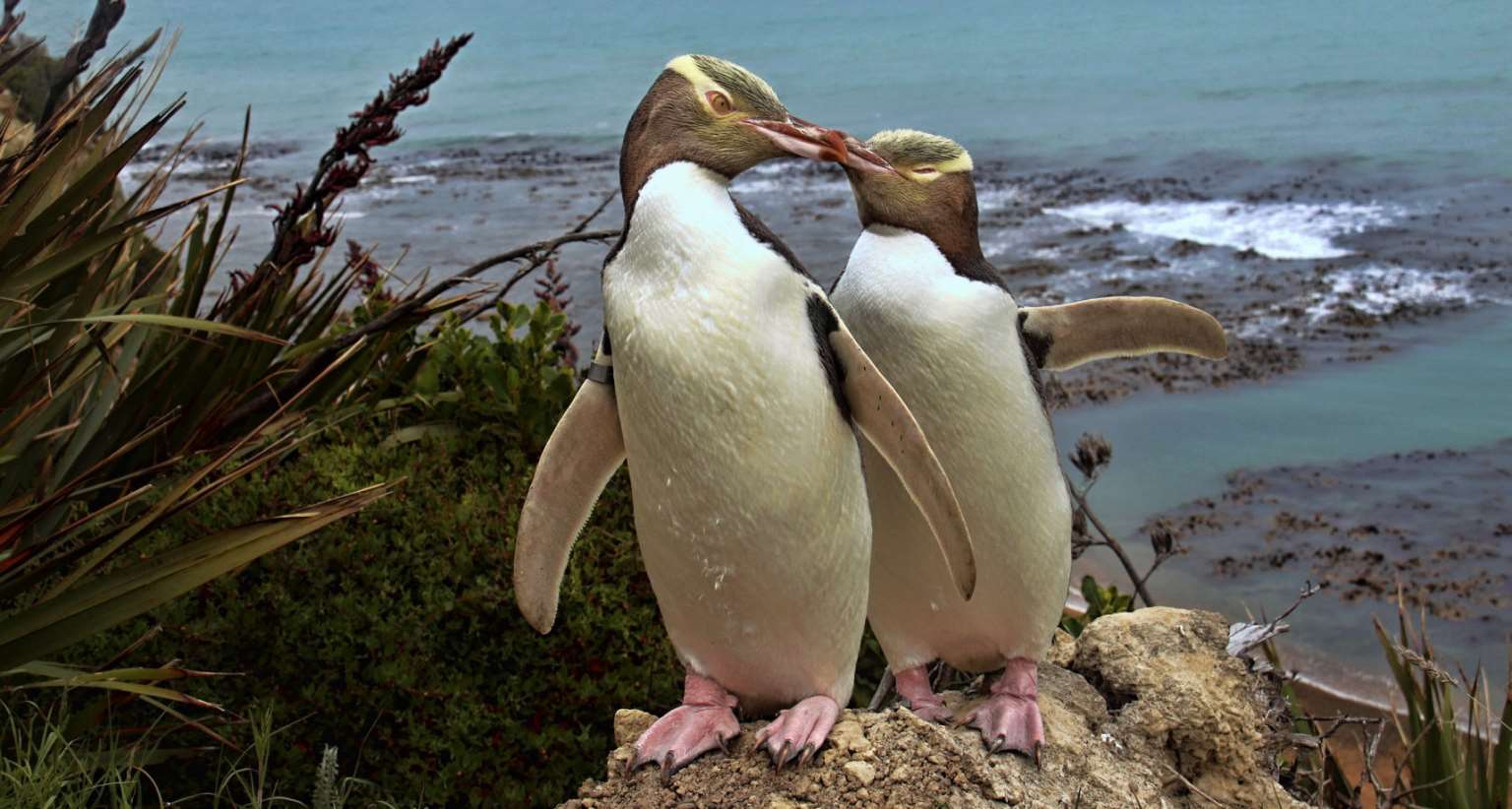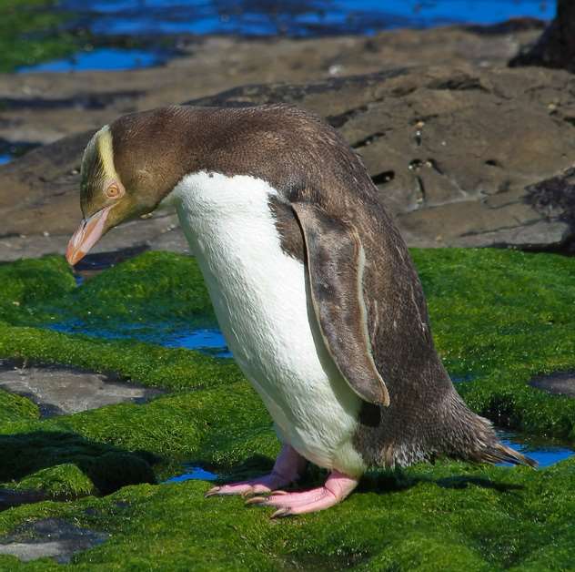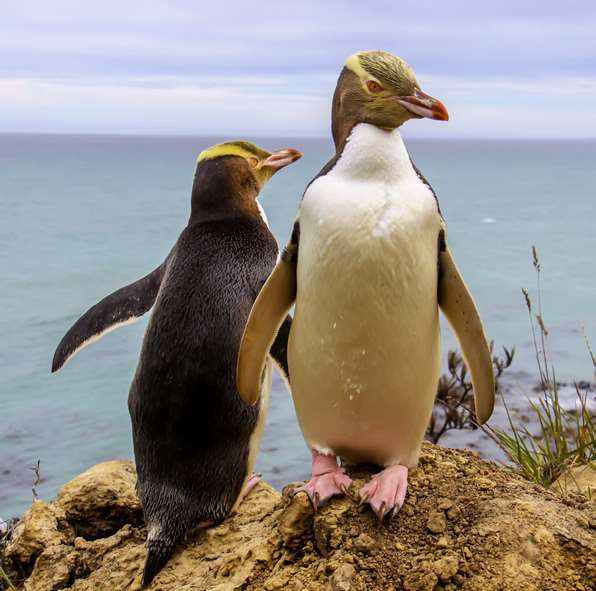 黄眼企鹅是新西兰本土物种,是世界上非常罕见和奇特的企鹅物种。它们的忠诚度非常高,除非伴侣有传宗接代上的问题,不然不会另结新欢,并且具有家庭概念,每当黄昏时分,就会返回陆地上的巢窝。