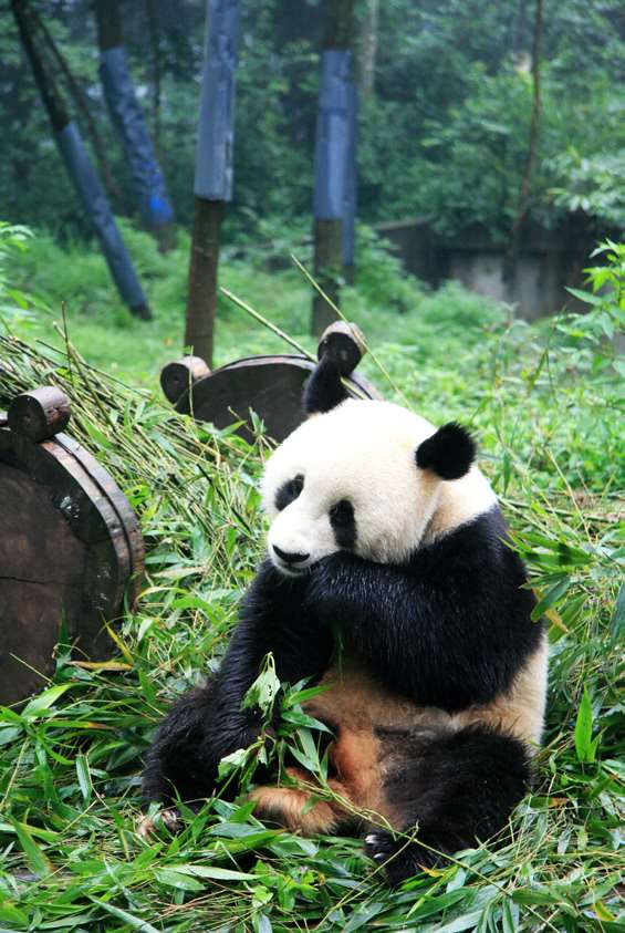 大熊猫食性最为奇特和有趣,它们把大多数时间都用在不停地剥竹竿,吃竹叶上。一生几乎完全靠吃竹子为生。但是它们在饿急了的情况下也会吃一点肉食。