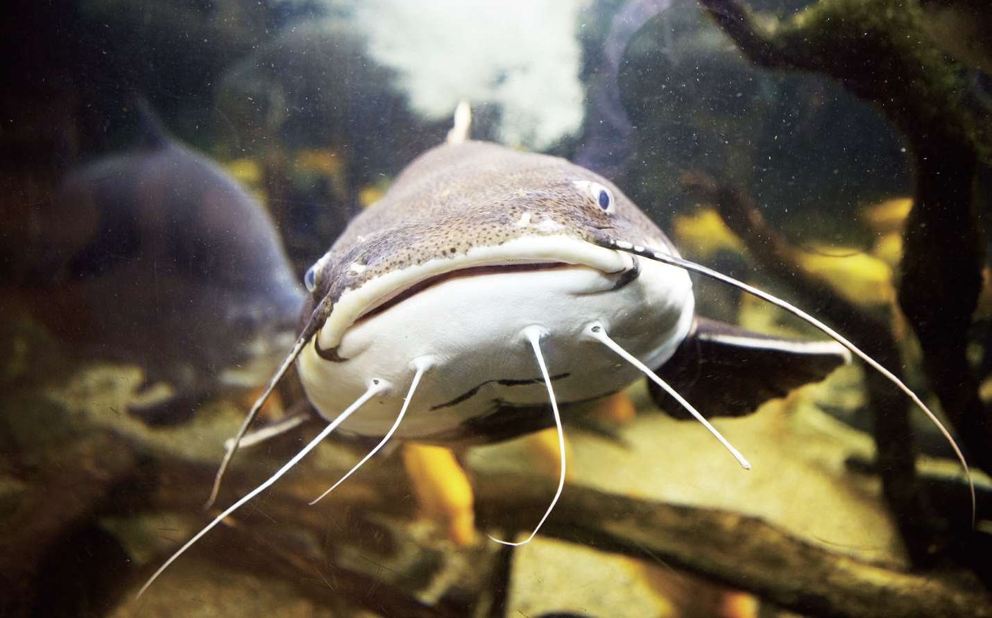 六须鲶鱼身长而无鳞,宽扁的鱼头上有一张惊人的阔嘴,里面长满一排排砂纸般细细的牙齿,足有几百颗之多。它们的上下颌上各长着一套触须,帮助它们在混沌的水域中捕捉猎物,它们的身影遍布欧洲的大湖以及水流不急的河流。