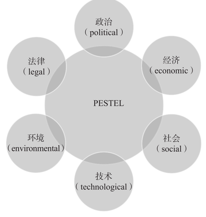 PESTEL模型是一个常用的公司外部经营环境的战略分析模型,由PEST模型演变而来,PEST是政治(political)、经济(economic)、社会(social)和技术(technological)四个要素的英文首字母缩写,之后把法律因素单列,同时环境因素的重要性上升,因此,PEST模型增加了环境(environmental)和法律(legal)两个要素,形成了“PESTEL”模型(见图2-4)。该模型分别从政治、经济、社会、技术、环境和法律六个维度分析公司发展趋势以及公司面临的机会和风险,既是公司风险管理规划的工具,也是管理咨询师开发产品和拓展市场的咨询工具,同时也是财务分析师应用财务分析模型时考虑重要假设因素的分析工具。
