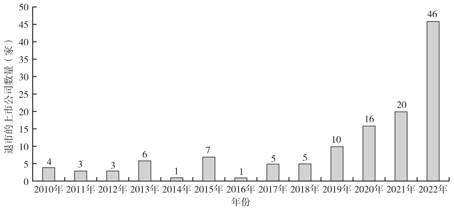 2022年6月30日厦门华侨电子股份有限公司(简称“厦华电子”)被上海证券交易所予以摘牌退市。根据统计数据显示,2022年共有40多家上市公司退市,其中除了“ST平能”被吸收合并退市外,其他上市公司被强制退市,创下2020年上海证券交易所、深圳证券交易所修订发布的退市相关规则生效后的新高,如图1-1所示。