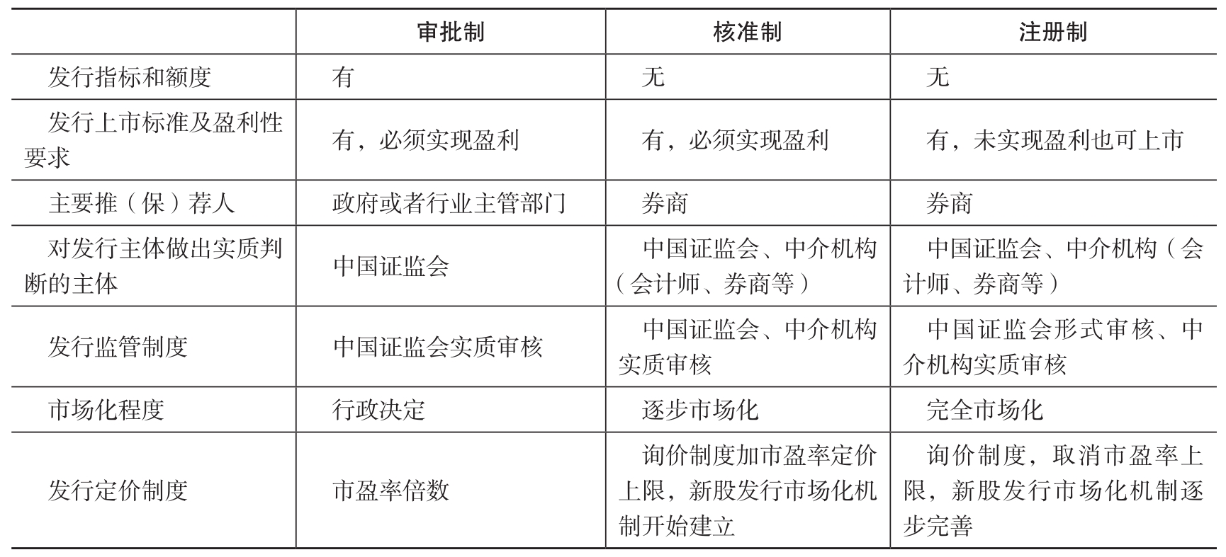 表1-4 不同股票发行制度的比较