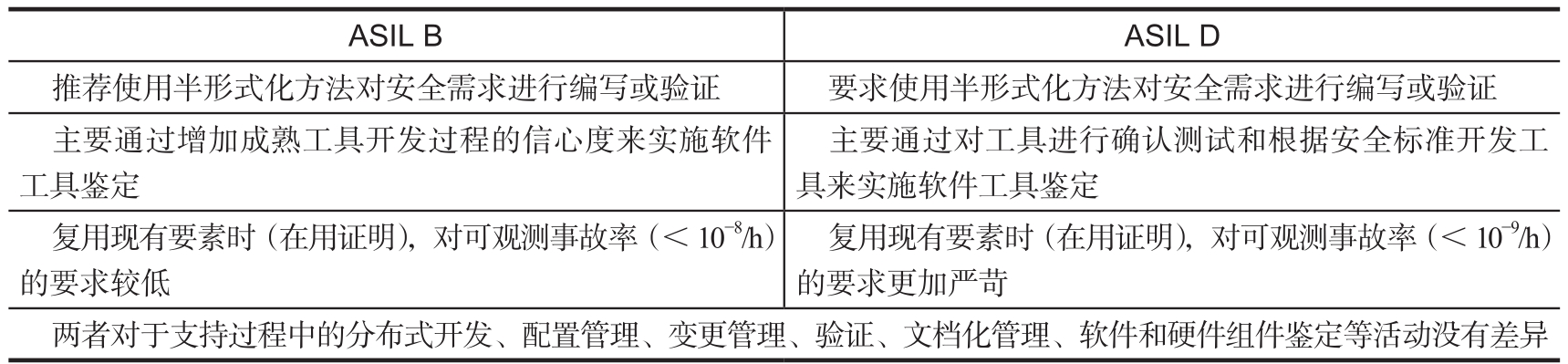 表3-22 ASIL B与ASIL D在具体实施过程中的差异