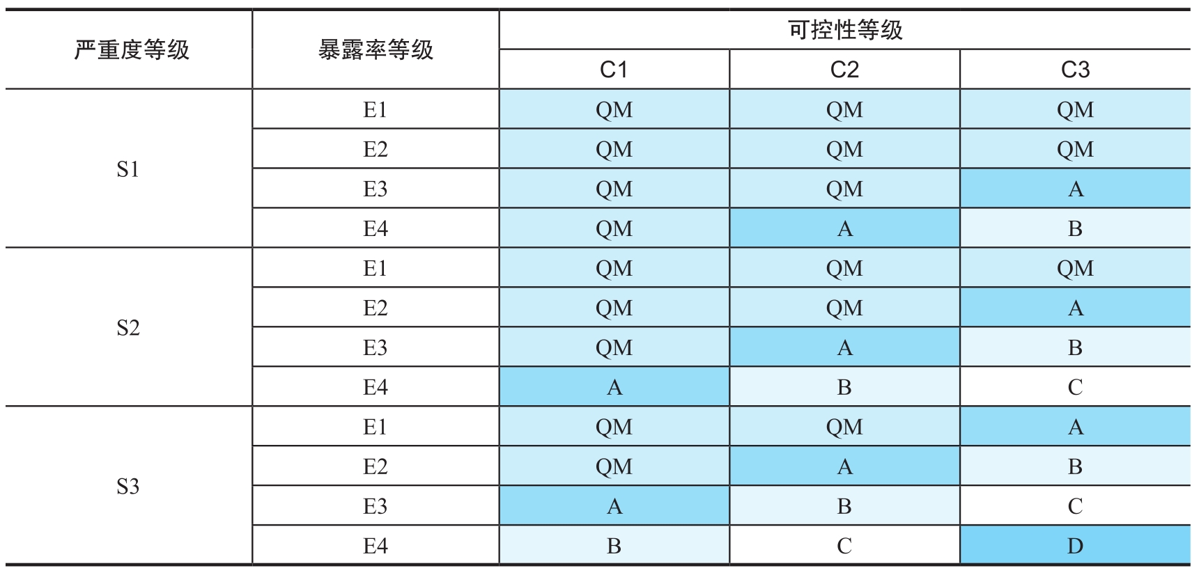 2.ASIL B和ASIL D等级对应第7部分生产、运营、服务和报废活动的差异