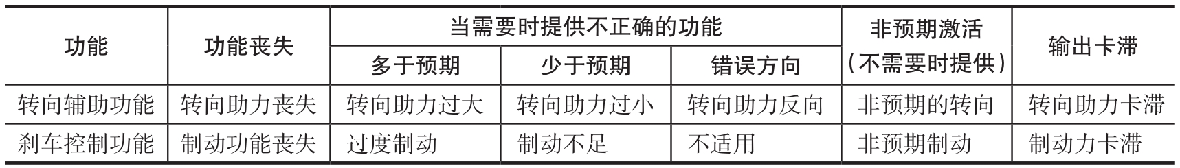 基于上述方法论,表3-1展示了转向辅助功能和刹车控制功能的HAZOP示例之失效模式。