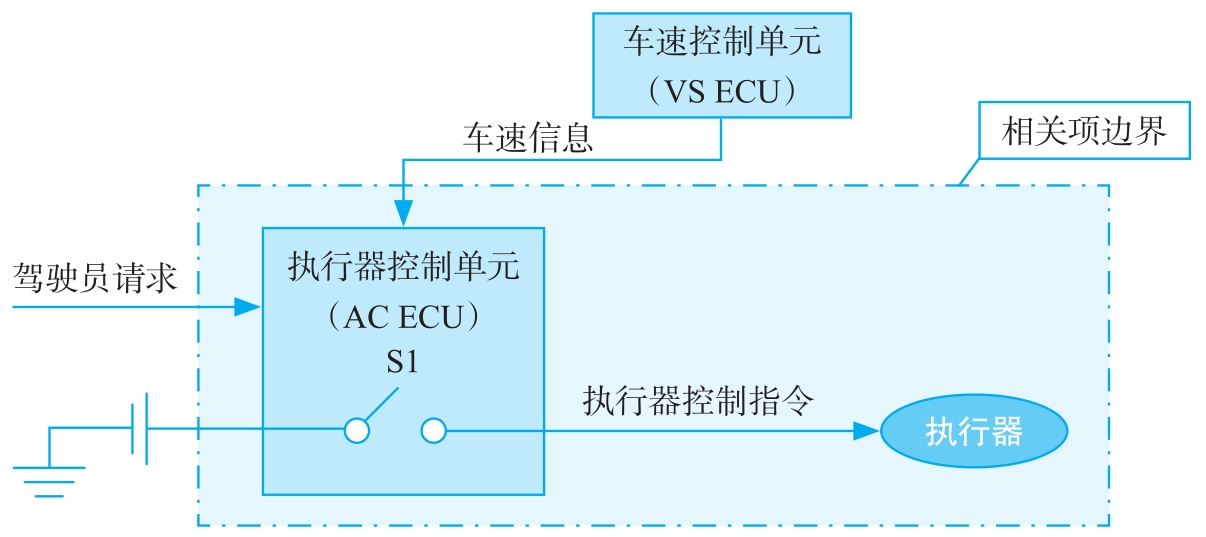 以具有一个执行器的系统为示例,驾驶员通过仪表板上的开关来触发此执行器。执行器在车速为零时提供舒适功能,但在车速超过15km/h时被激活,并可能导致危害事件发生。