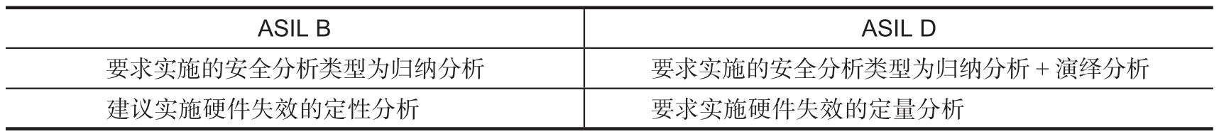 4.ASIL B和ASIL D等级对应第9部分安全分析活动的差异