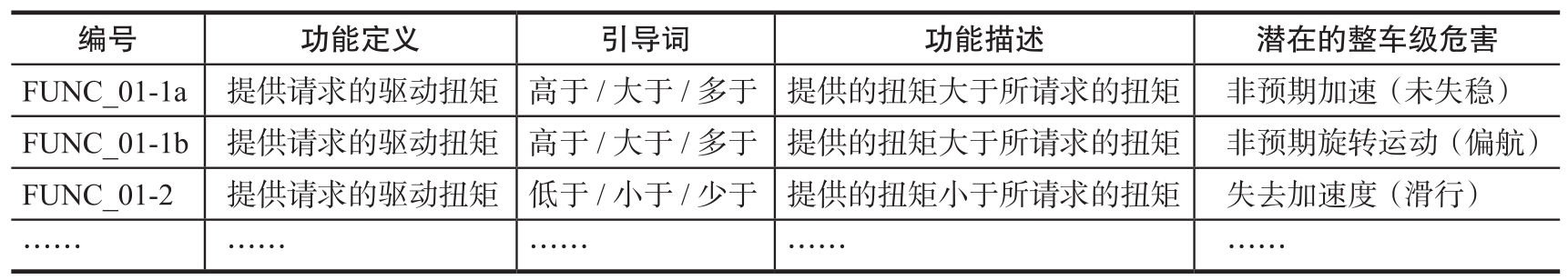 表3-17 FUNC_01(提供请求的驱动扭矩)危害分析