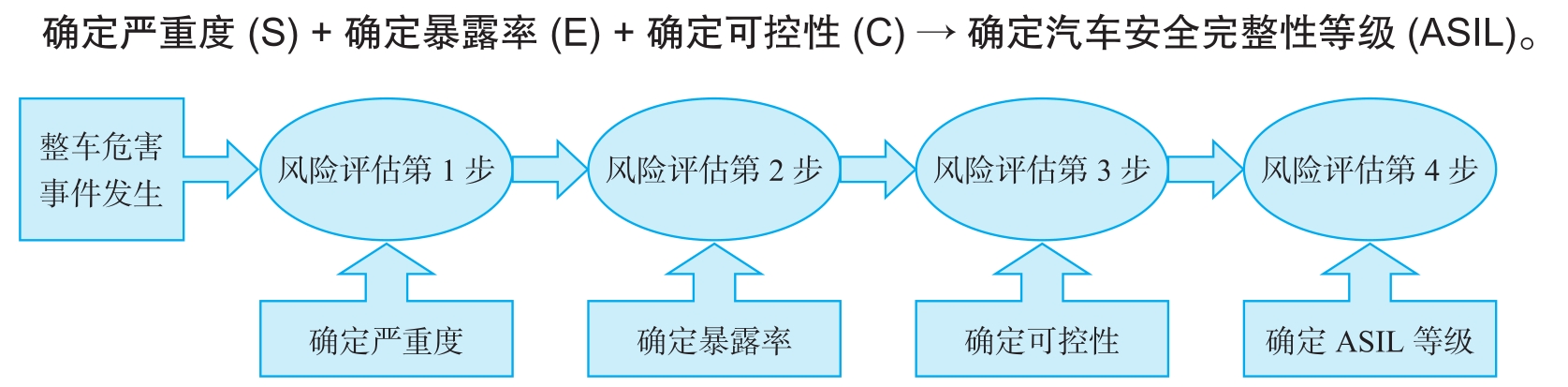 第三步 风险评估: 结合第一步得到的“潜在危害”及第二步识别到的“场景”,分析出危害事件,并根据严重度(S)、暴露率(E)、可控性(C)3个评价指标评估危害事件的影响等级。