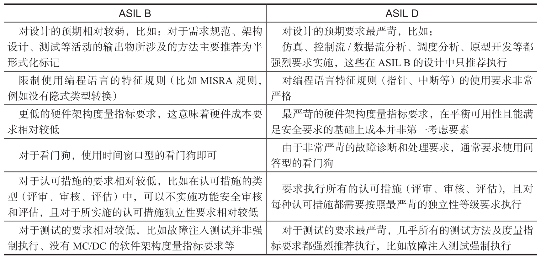 以上就是ASIL B与ASIL D在对应部分安全活动上的差异,这些差异实际上源自标准,标准本身对此有定义。