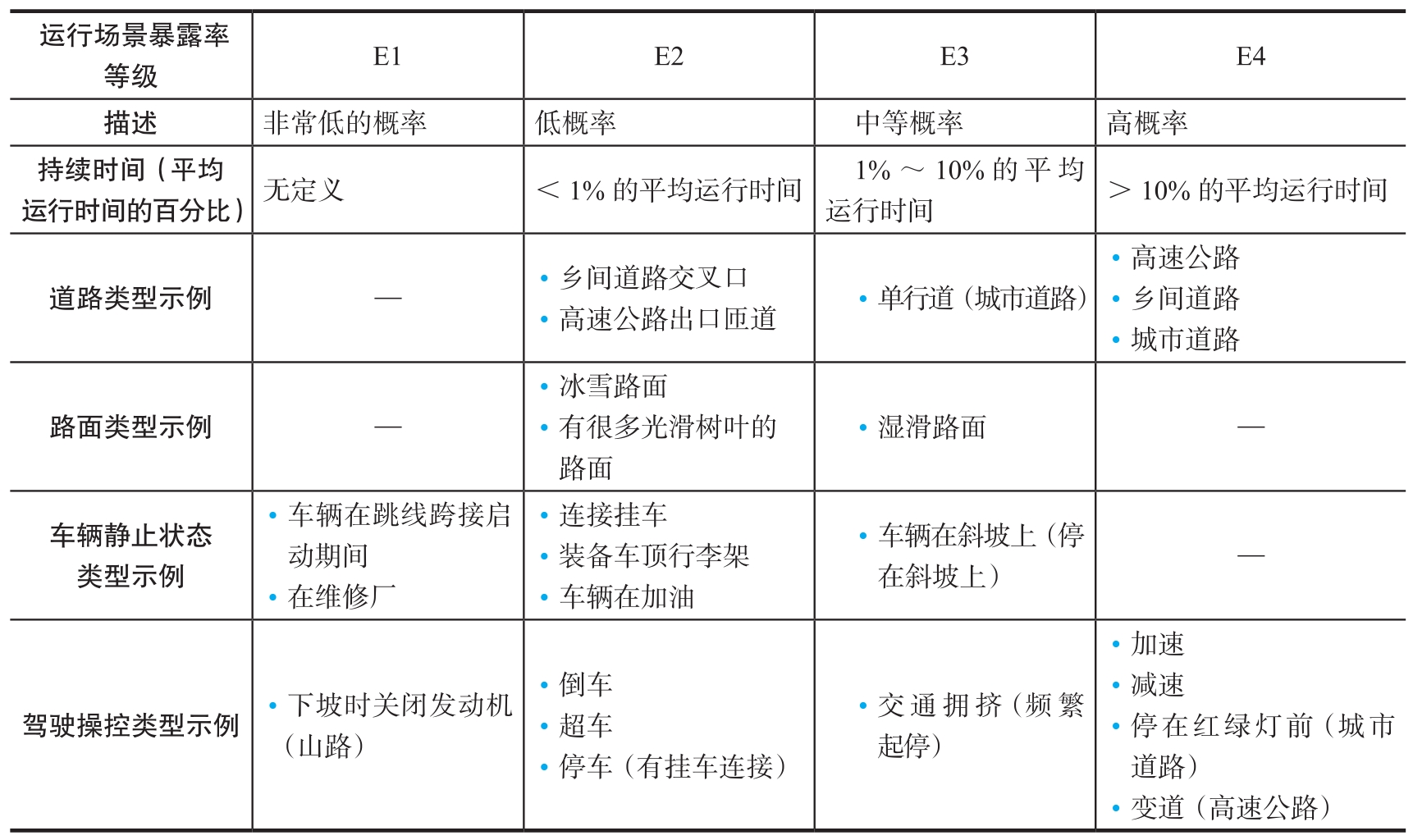 解读 在识别相关项的运行模式和运行场景时,既要考虑车辆的正确使用情况,也要考虑合理且可预见的不正确使用情况。例如,踩刹车后点火是整车的启动流程;而点火之后挂到D挡但电子驻车(EPB)制动系统忘记释放,踩加速踏板试图驱动车辆,这属于比较常见的合理且可预见的不正确使用情况。此外,在场景识别这一步,所考虑的场景需具有合理性,即在你识别的场景下,假定相关项能够以安全的方式运行。例如,若你选择的场景是车水马龙的闹市区,而运行场景是车辆高速行驶并深踩油门,这种场景组合就不合理。