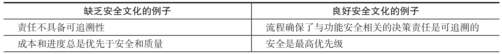 ISO 26262-2:2018附录B表B.1中的例子非常具有说明意义。我们可以从中挑选一部分来举一反三,如表1-2所示。