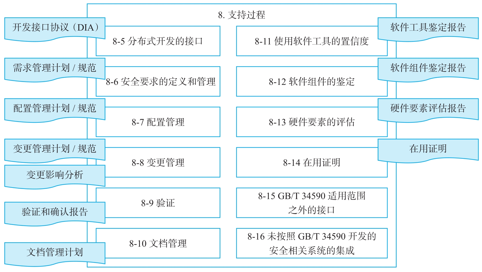 从第8部分的框架视图可以看出,支持过程贯穿整个功能安全开发生命周期。