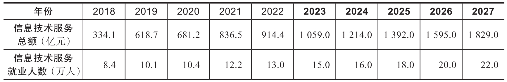 表3-5 河北省信息技术服务总额与就业人数基于灰色模型的预测值