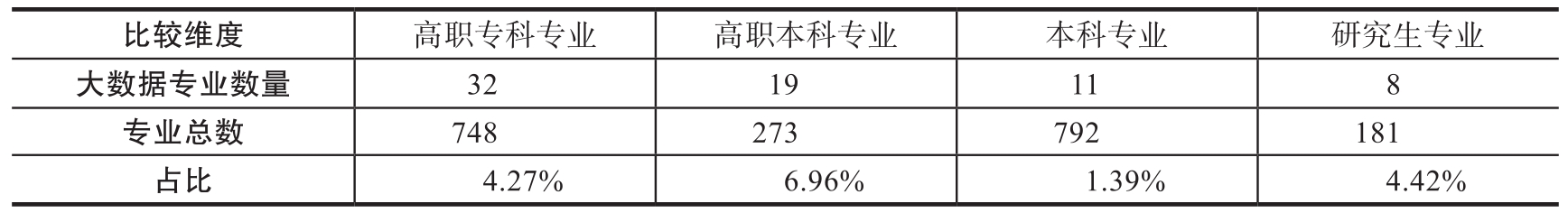 表3-7 大数据产业相关专业在各学历层次中的分布情况