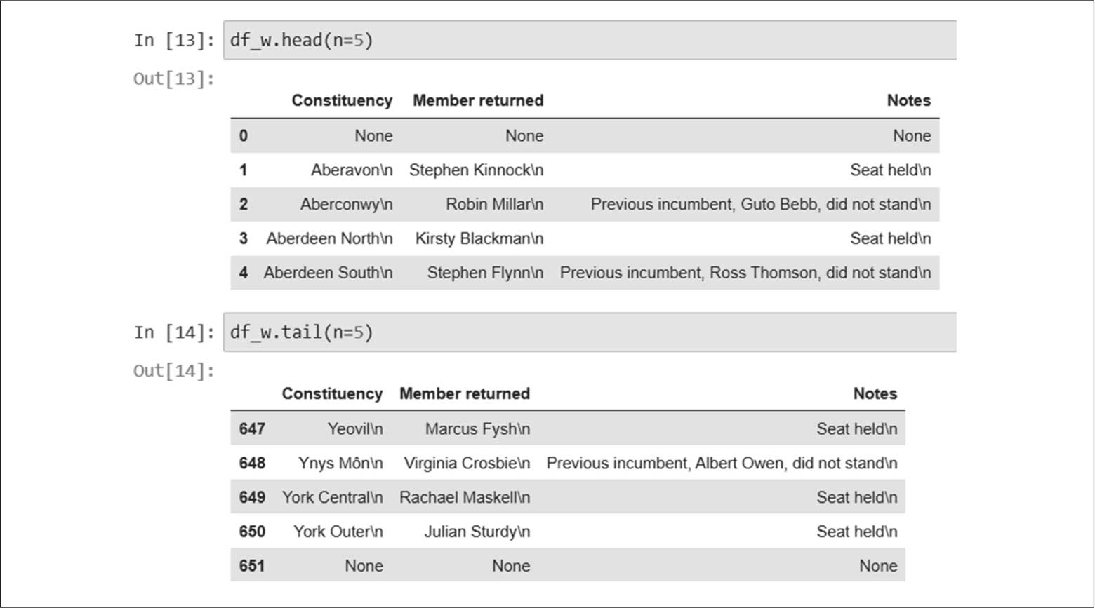 正如之前看到的,TheyWorkForYou数据已经相当整洁,所以此阶段只需将列名标准化,使两个DataFrame的列名一致。一致的列名能使匹配更加轻松: