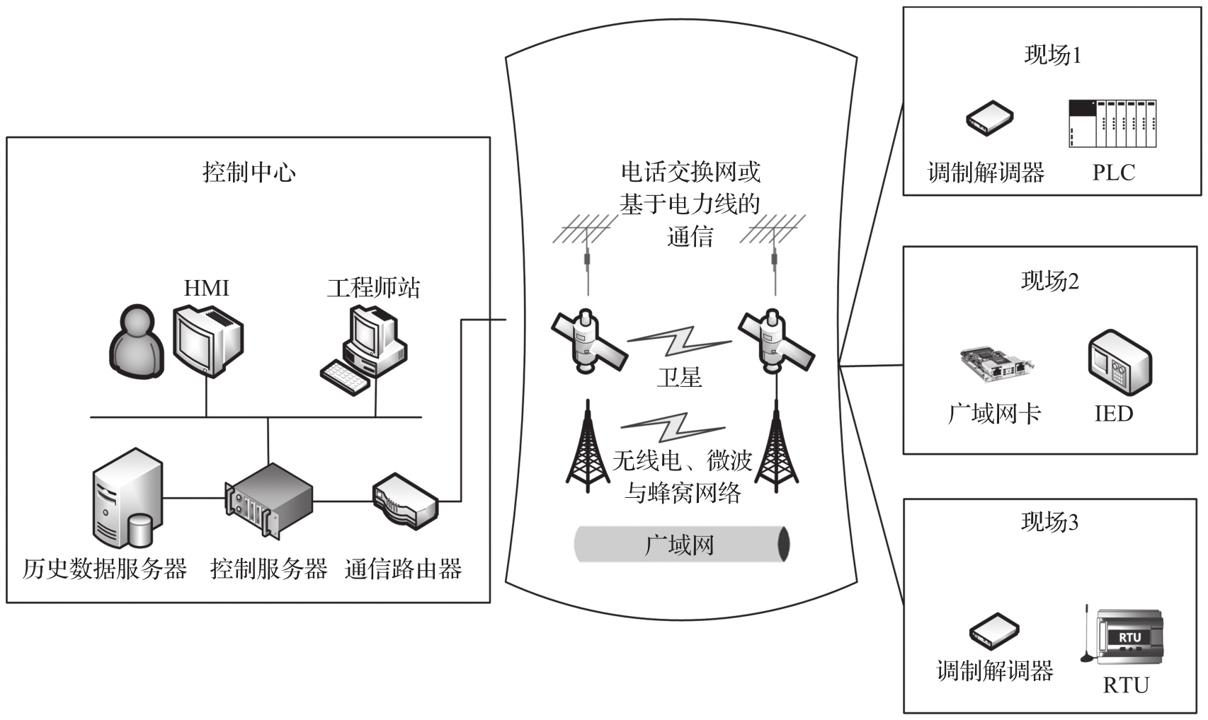数据采集与监控(Supervisory Control and Data Acquisition,SCADA)系统是一种实时分布式系统,用于远程监测和控制现场设备。该系统主要用于铁路、石油、燃气、电力、冶金、化学化工等领域,进行过程控制、监视控制和数据采集,以实现安全生产、调度、管理、优化和故障检查。SCADA系统的结构如图2-8所示。