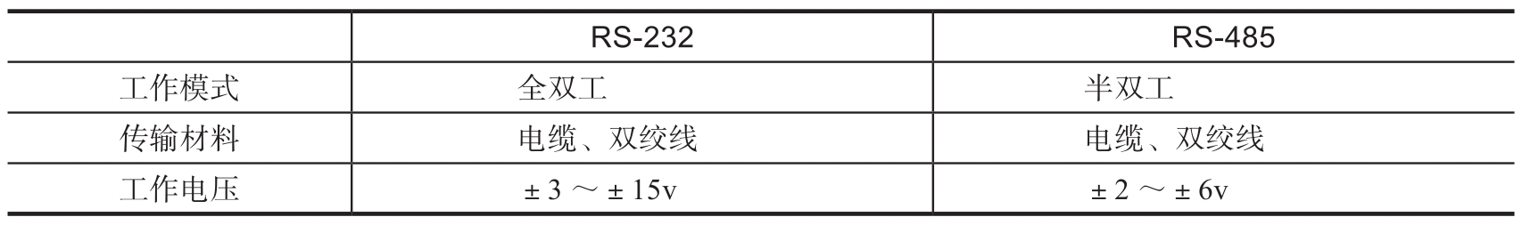 表3-1 RS-232和RS-485的异同