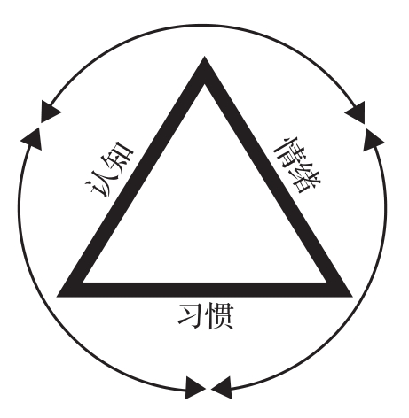 这些部分合在一起,组成了一个三角形,它的每一条边(习惯、认知和情绪),既是另外两条边的原因,也是它们的结果(见图1-1)。例如,回避或害怕的情绪会驱使你做出强迫行为,而扭曲的、有缺陷的认知也会促使你做出这种行为。同样地,焦虑感会导致回避行为,而回避行为又与有缺陷、不正确的认知有关。