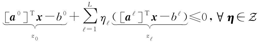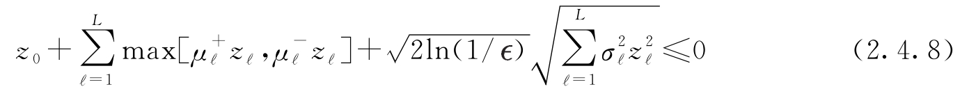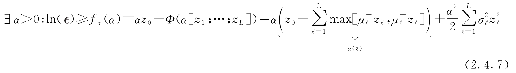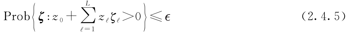 命题2.4.1 在假设P.1~P.2的条件下,关系式(2.4.8)是式(2.4.5)成立的一个充分条件。换句话说,变量 z 的显式凸约束(2.4.8)是机会约束(2.4.5)的保守近似。