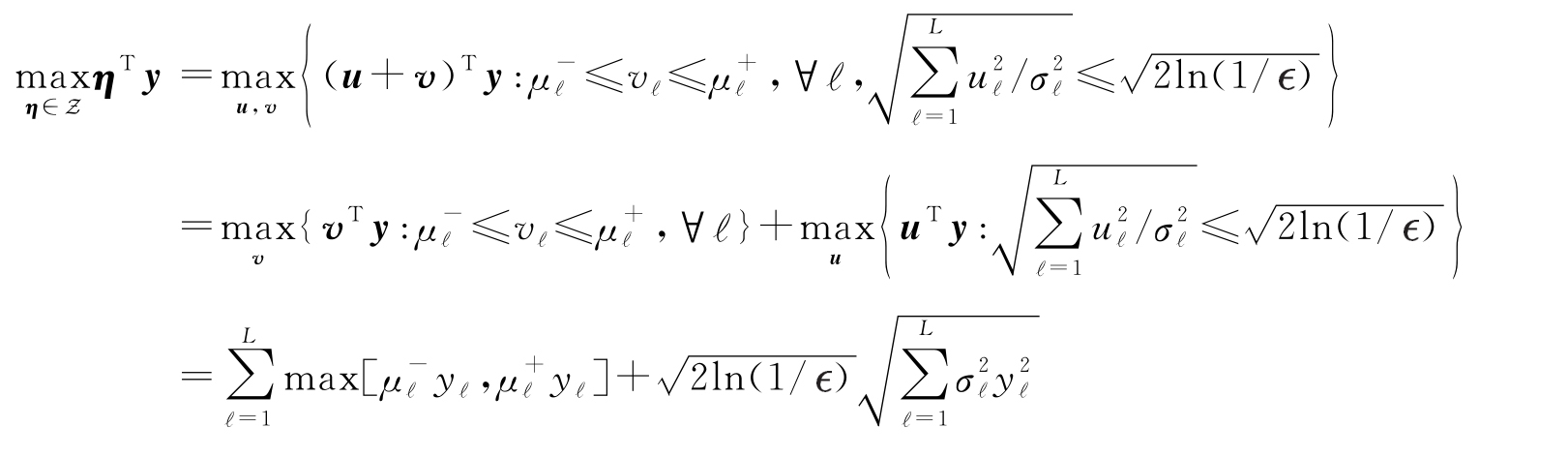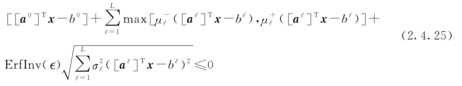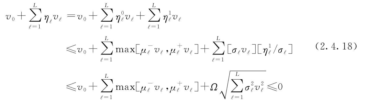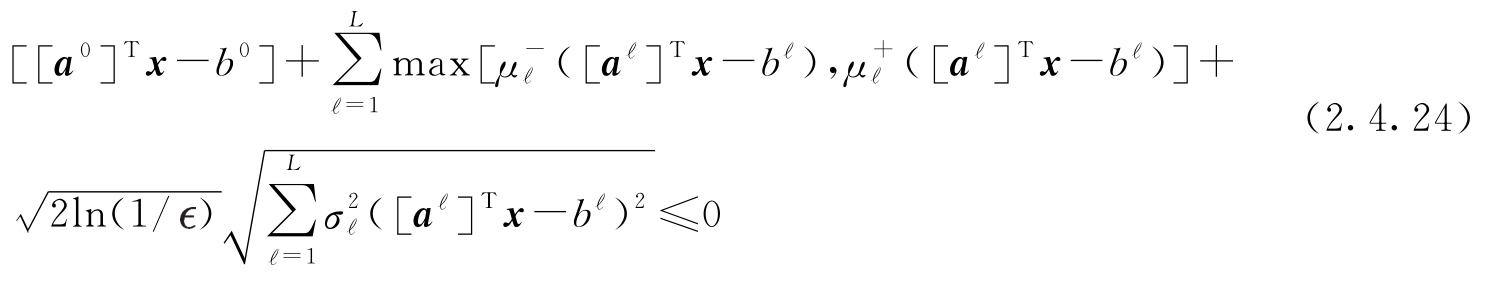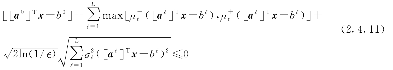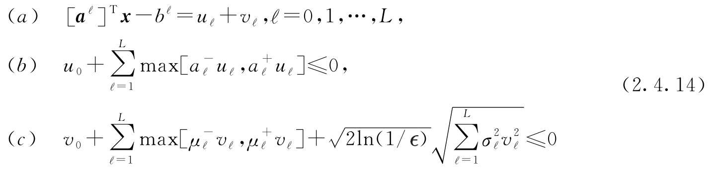 其中, x , u ,v为变量。此外,任何 x 都可以扩展为后一个组的可行解 ( x , u ,v),对于机会约束(2.2.2)而言都是可行的。