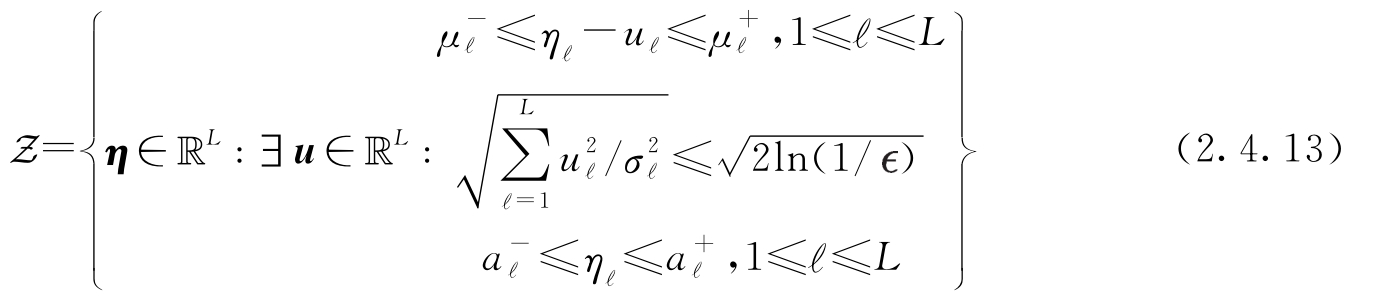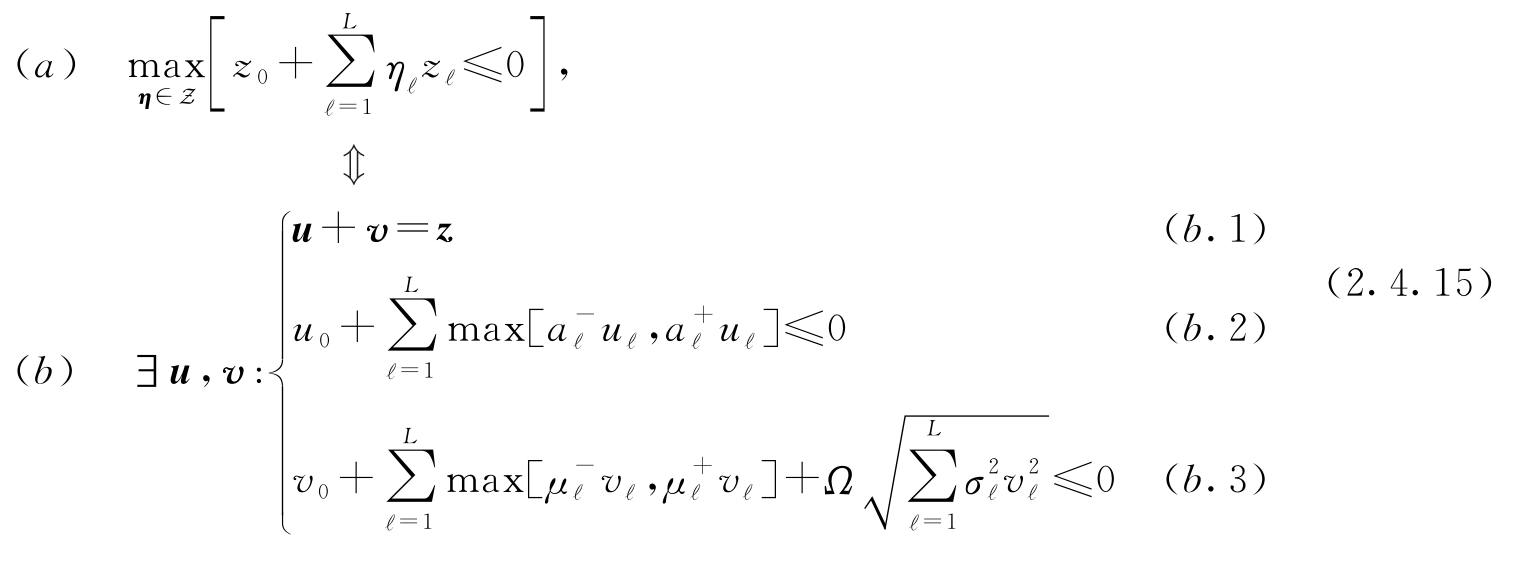 定理2.4.3 令影响式(2.2.1)的随机扰动服从P.1~P.2,并考虑对应于扰动集(2.4.10)的(2.2.1)RC。这个RC可以用显式凸不等式等价表示为