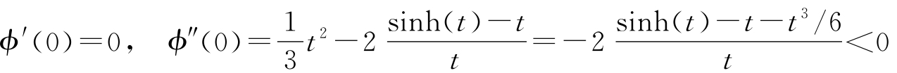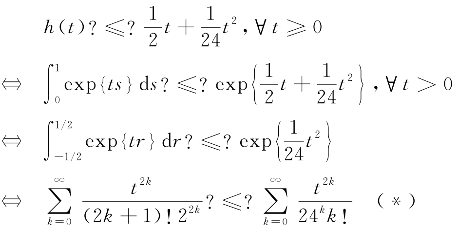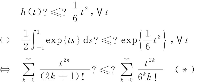 (ii)函数 h ( t )=ln f ( t )是凸函数,并且也是偶函数和二阶可微的,其二阶导数在整个实轴上以1为边界,且 h (0)=0, h′ (0)=0。因此,函数