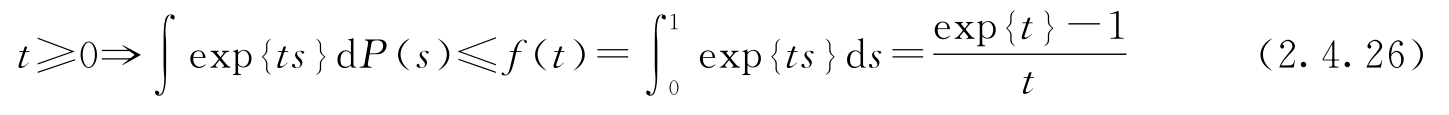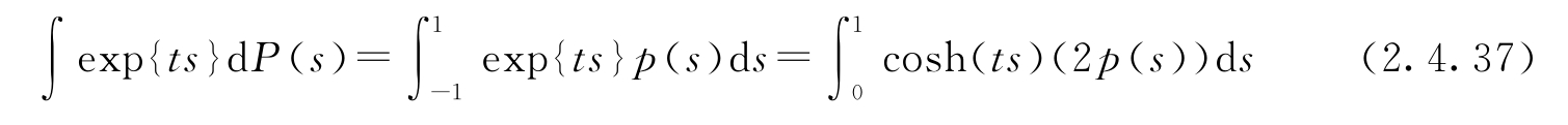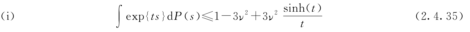 要证明(i),只需验证当 P 的密度 p ( s )是平滑、均匀、关于0的单峰分布且仅存在于[-1,1]上的式(2.4.35)即可(参考式(2.4.26)的证明)。除此之外,根据连续性,我们可以假设 t ≠0。我们有