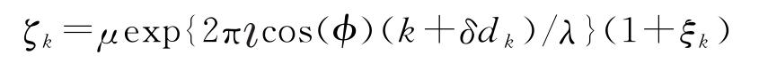 制造天线时,振荡器不能沿理想的等距网格放置。此外,由于温度、风等影响因素的变化导致天线变形,它们的位置随时间变化而变化。为了简化问题,假设定位误差只影响从原点到振荡器的距离,而不影响从原点到振荡器的方向,因此后者属于
