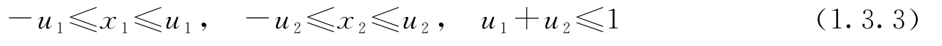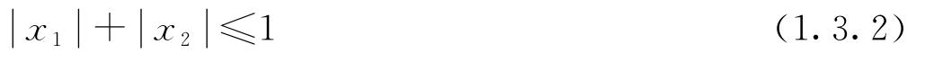 是否表示与式(1.3.2)相同的集合?在这里,每个人都同意表示成相同集合这一观点,尽管我们不能以前一种方式证明这个观点,因为式(1.3.2)和式(1.3.3)的可行集处在不同空间,因此不能彼此等同。
