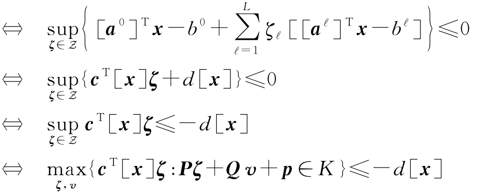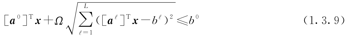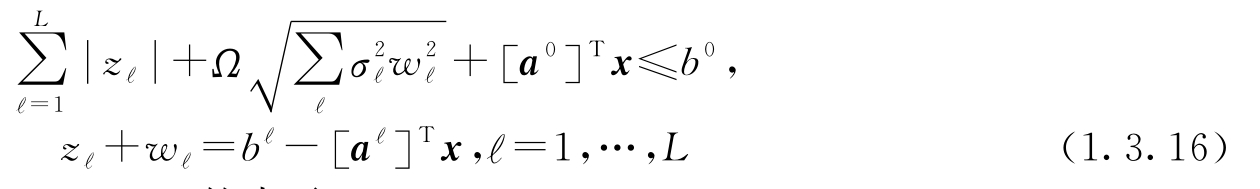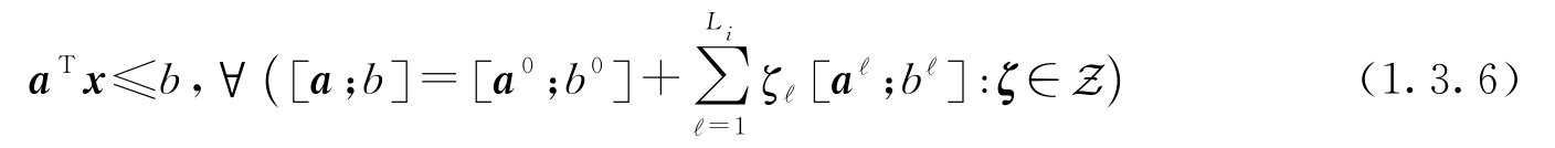 在(ii)和(iii)的情况下还假定式(1.3.11)成立。然后将具有扰动集 Z 的不确定线性不等式(1.3.4)~(1.3.5)的鲁棒对等(1.3.6)进行等价重新表述,表示为以下显式组: