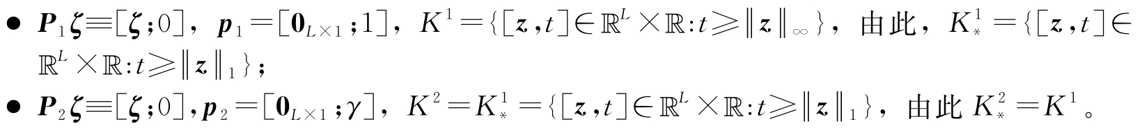 在所有情况下,重新表述的大小是式(1.3.6)中变量的个数和 Z 的锥二次描述的大小,而重新表述的数据很容易通过式(1.3.10)扰动集 Z 的描述数据得到。