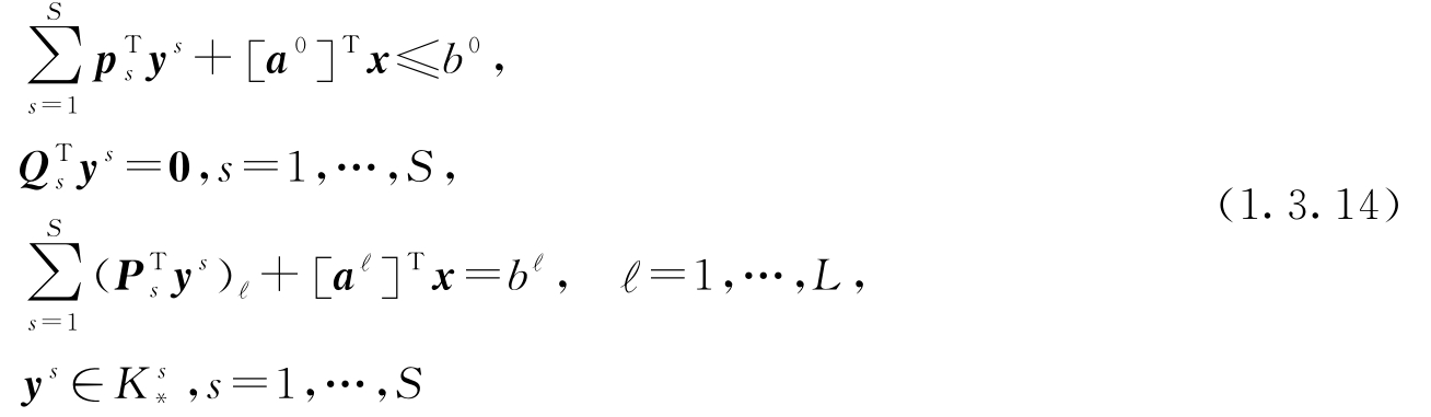 在这种情况下,式(1.3.12)成为变量为 x , y 1 ,…, y S 的锥约束组: