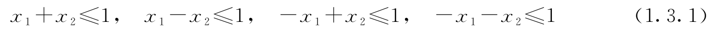 从这个意义上说,式(1.3.2)和式(1.3.1)定义了相同的可行集。那么,以下关于5个不等式的线性不等式组